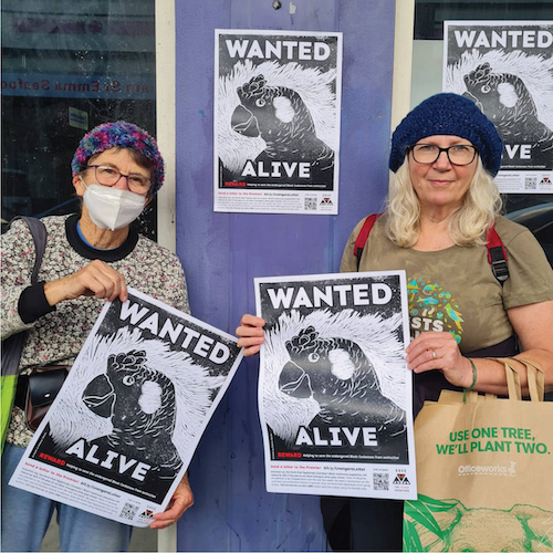 Flocks of Black Cockatoos used to fill the skies over Perth/Boorloo in Australia’s South West, but now all three species are threatened with extinction. Considered messenger birds by many Noongar people, their absence in the landscape is a message that we are failing to ‘Care for Country.’ Current laws and recovery plans are failing to protect their forest and woodland habitat from clearing, nor do they adequately address key threats, such as shootings, toxic sprays, fire, and vehicle strikes.