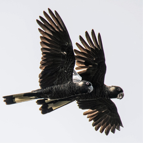 Colour is similar to Ngolyenok (Carnaby’s Black Cockatoo). Blackish feathers with brown hues and dusky white tips forming a scalloped edge pattern. White-barred tail tipped with black edge. Ngolak has a longer thinner beak than the Ngolak and breeds more in forests than woodlands.