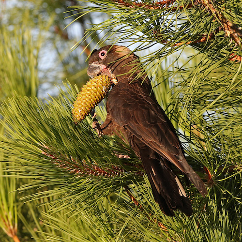 Eucalyptus nuts, flowers and insect larvae from Marri trees and Eucalyptus, Corymbia and proteaceous plants such as Banksia Grevillea and Hakea. In the non-breeding season, they live closer to the coast and feed on Banksia and Tuart woodlands. They also eat exotic planted species such as macadamias, almonds, pines and Canola and other grains in the Wheatbelt.