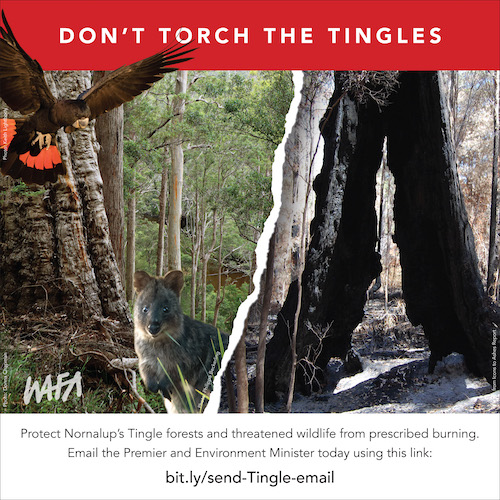 The WA Government are set to burn ancient Tingle forest on Douglas Hill, near Nornalup. One of the only areas of long unburnt old growth forest remaining, and an important sanctuary for threatened and endangered animals including Quokkas, Red-tailed Phascogales, Western Ringtail possums and all 3 species of Black Cockatoos.